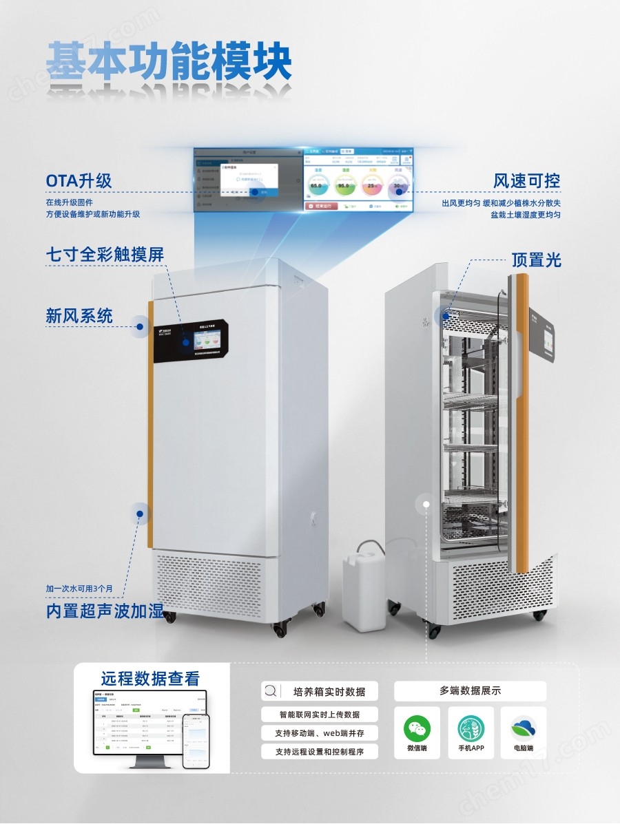 21、自带云平台,数据查看便捷:数据实时上传云平台,支持手机端、web端、公众号查看实时数据和历史数据,并可分析、下载、打印。通过网页端和手机APP端可随时远程设置箱体运行数值、查询数据、在线升级。